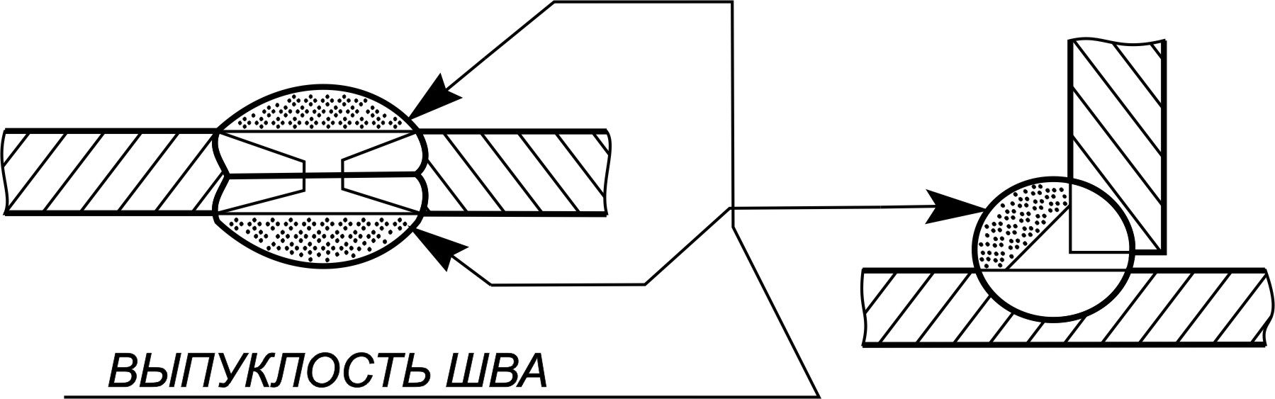 - при очень коротких катетах на стыковых соединениях образуются большие выпуклости. Такие дефекты возникают при длинной дуге, металл при этом застывает сверху и даже при небольших нагрузках сразу же появляются трещины.
