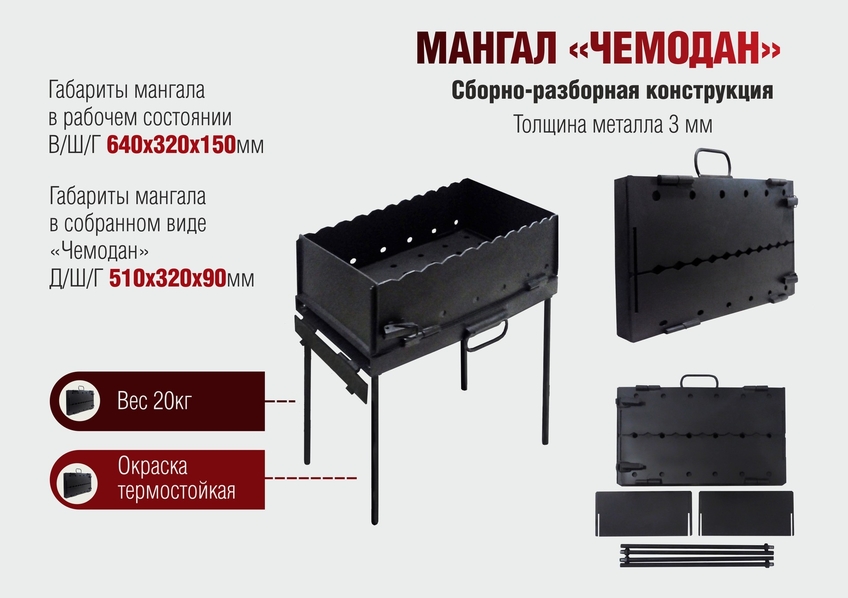 - Имеется двойное дно. Благодаря чему сохраняются постоянные температурные кондиции жарового слоя. Угли не сыплются на землю или ноги кулинара.