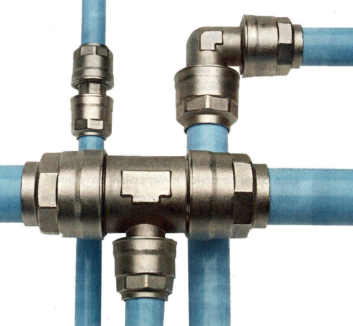 - Пресс — фитинги, пуш — фитинги позволяют надежно соединить пластиковые трубы разного диаметра, подключить систему к металлической водопроводной магистрали. Пуш — фитинговое соединение может эффективно работать в системах горячего водоснабжения, для его монтажа не требуется специального инструмента.