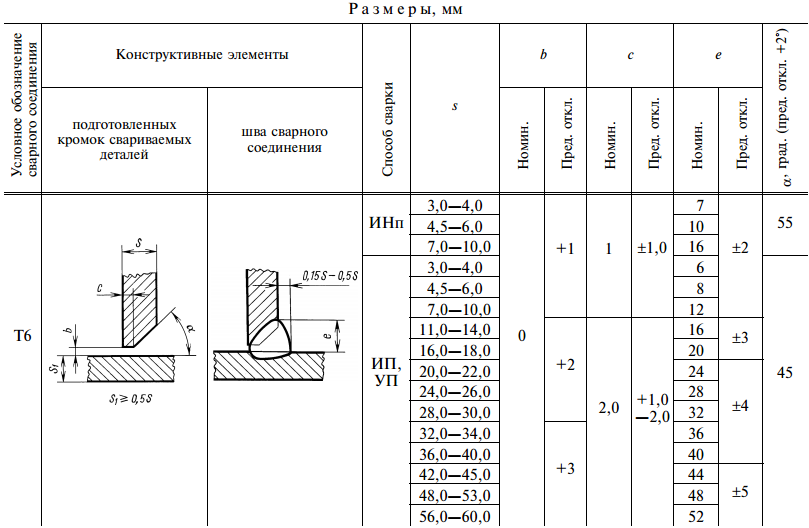 Угол между сварочными поверхностями в градусах 60-90 91-100 101-106 107-113 114-120