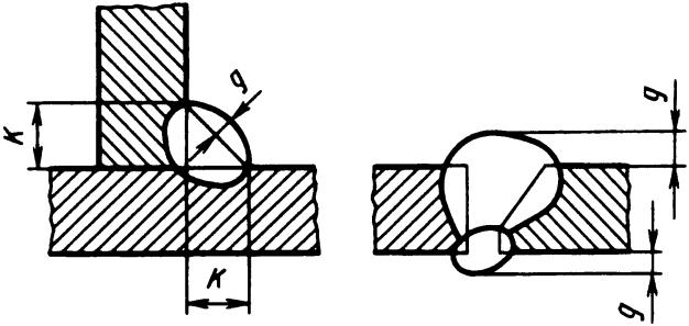 Угловые швы характеризуются катетом и формой шва. Различают три типа угловых швов: нормальный, выпуклый (усиленный) и вогнутый (ослабленный).