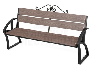 Мы выбрали для работы простую скамью с сиденьем и спинкой из узких досок, единственная изюминка которой — гнутые подлокотники.