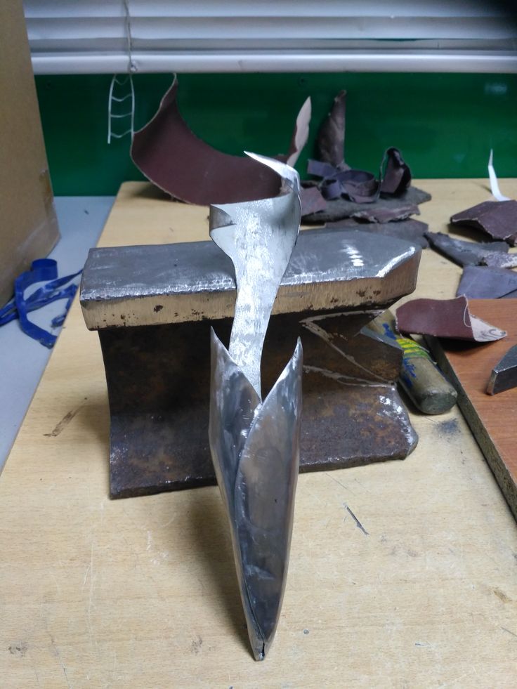 Если у вас нет горна, используйте кислородно-ацетиленовую или пропановую горелку . После этого обрежьте лезвие нужной формы и отшлифуйте кромку на ленточной шлифовальной машине. Чем плавнее и острее конусность, тем лучше. Теперь пришло время просверлить отверстия перед процессом закалки.