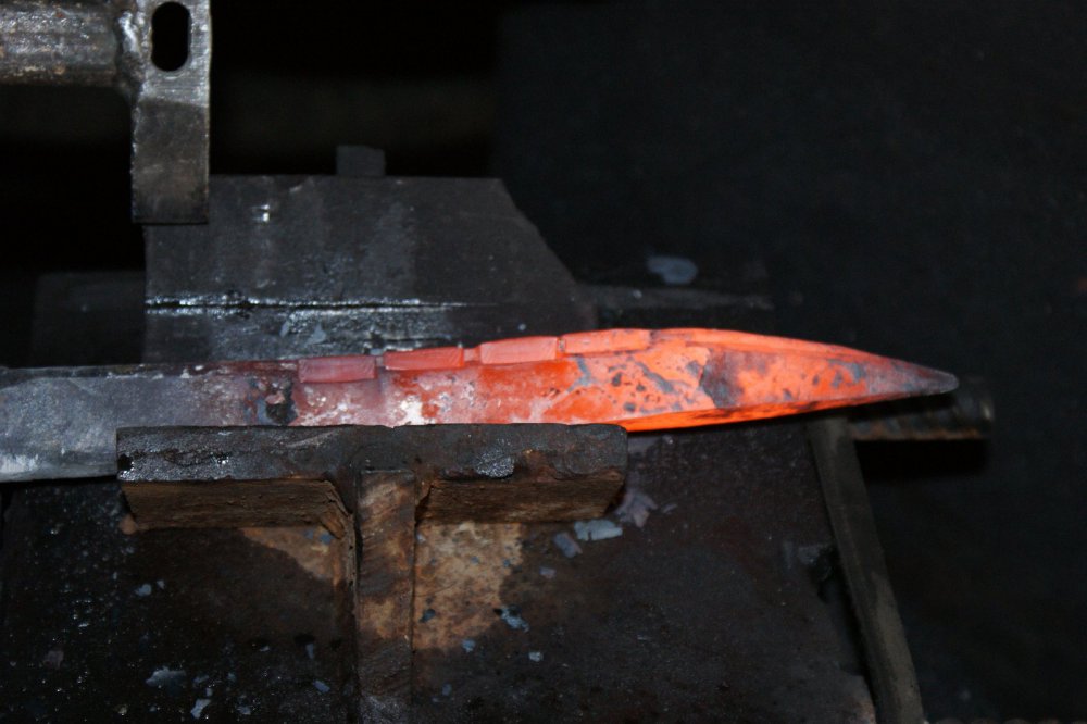 На мой взгляд, самый ответственный этап. Он делает клинок прочным и твердым. Вариантов закаливания много: