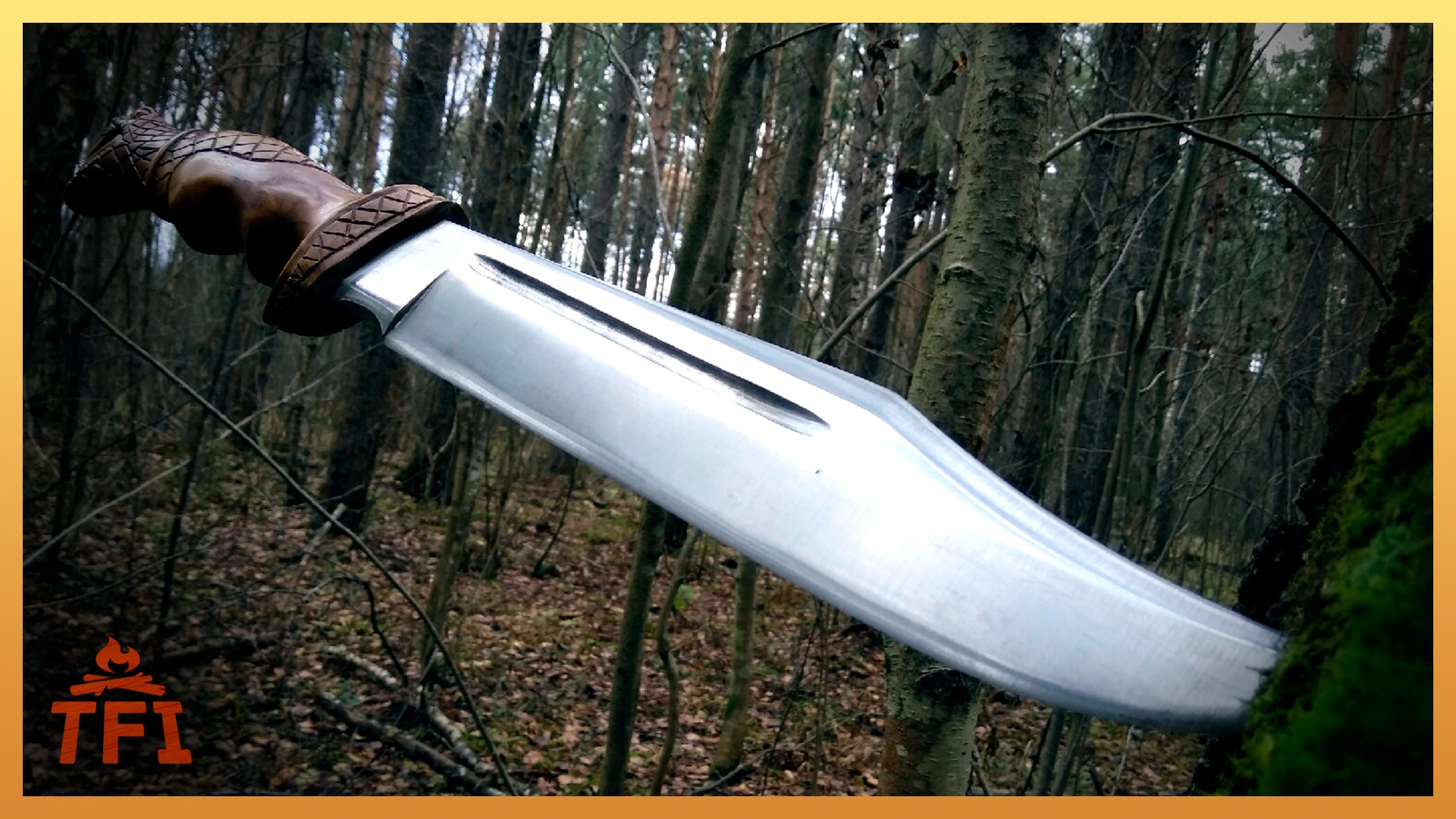 Как то я сделал «Нож Рэмбо» по Моррелу ( 40Х5Х0,6 см) нож был сделан из подшипника и закален до 55 единиц. Обычно такие ножи довольно крепкие и «резкие» . После он был похромирован. При попытке срубить ветку в 1 см лезвие лопнуло на две части по средине.