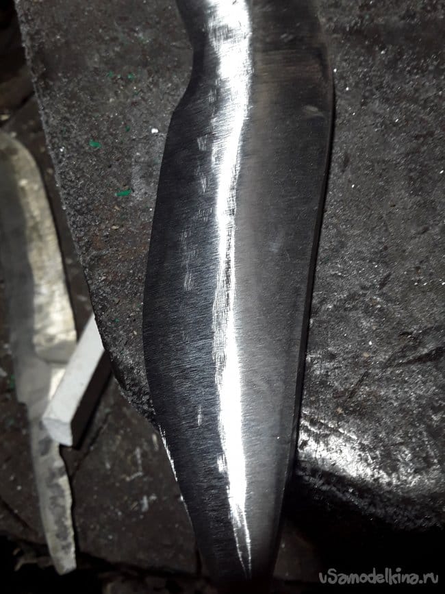 Затем на станке нужно придать форму лезвия, желательно, чтобы был мелкозернистый камень, в противном случае, нож будет выглядеть шероховатым и немного не аккуратным.