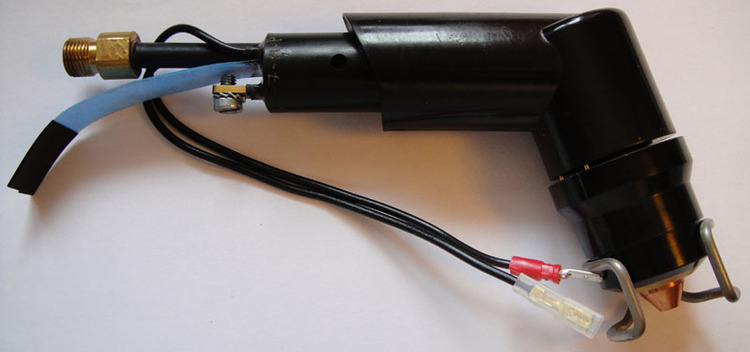 - Сильноточный постоянный ток содержит мостовой выпрямитель, большие конденсаторы и геркон (используется в качестве датчика тока, позволяющего зажигать высоковольтную дугу сразу, когда ток начинает поступать к головке, отключая систему высоковольтной дуги, когда она больше не нужно)
