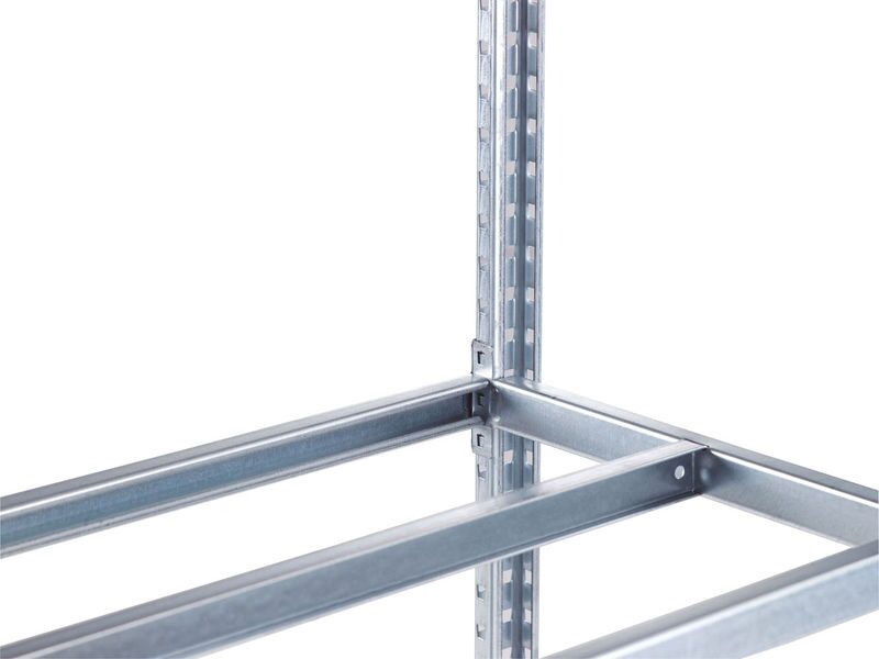 Стеллаж секционной конструкции позволяет формировать многосекционный стеллаж любой длины. Распределенная нагрузка на каждую полку 125 кг. Грузоподъемность секции стеллажа составляет 450 кг. Нижняя полка стеллажа должна размещаться не выше 150мм от пола. Стойки стеллажа изготовлены из фигурного профиля. шаг перфорации равен 25 мм| диаметр (отверстий) перфорации 7мм.