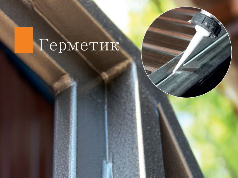 Не забудьте замазать получившиеся зазоры между основной рамой и внутренним каркасом силиконовым герметиком. Обеспечьте нормальную гидроизоляцию Вашей конструкции, не забыв о сварочных швах. В последнюю очередь, выполните грунтовку и покраску полотна откатных ворот.