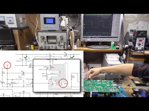 Проверяют на целостность цепочки и транзистор. На выходе из блока питания два диода обеспечивают 25 В. Если прозвон показал, что короткого замыкания нет, вторичные цепи не нагружают блок питания, он запустится. Если запуска нет, возможно, пробита оптопара или транзистор. Если блок питания запускается на короткое время и затем отключается от сети, проверяют транзистор. Если он нагрелся, значит, рядом пробит и требует замены диод.