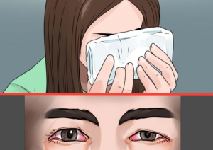- К векам прикладывают на 10 минут прохладные компрессы.