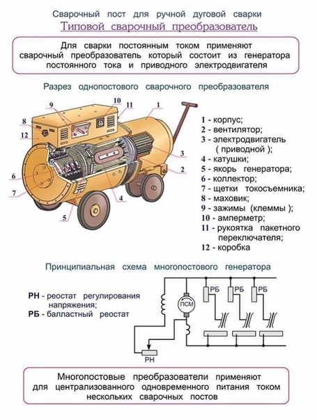 7.6.13. В качестве источников сварочного тока должны применяться только специально для этого предназначенные и удовлетворяющие требованиям действующих стандартов сварочные трансформаторы или преобразователи статические или двигатель-генераторные с электродвигателями или двигателями внутреннего сгорания. Питание сварочной дуги электрошлаковой ванны и контактной сварки непосредственно от силовой, осветительной или контактной электрической сети не допускается.