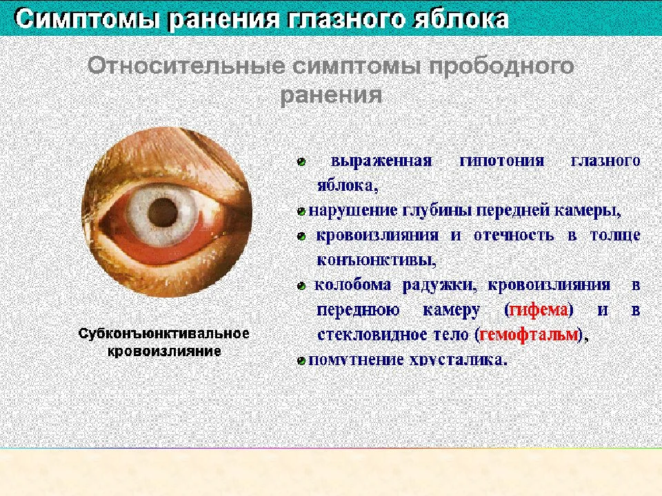 - Разрыв и покраснение глаза и оболочек вокруг глаза (налитый кровью)